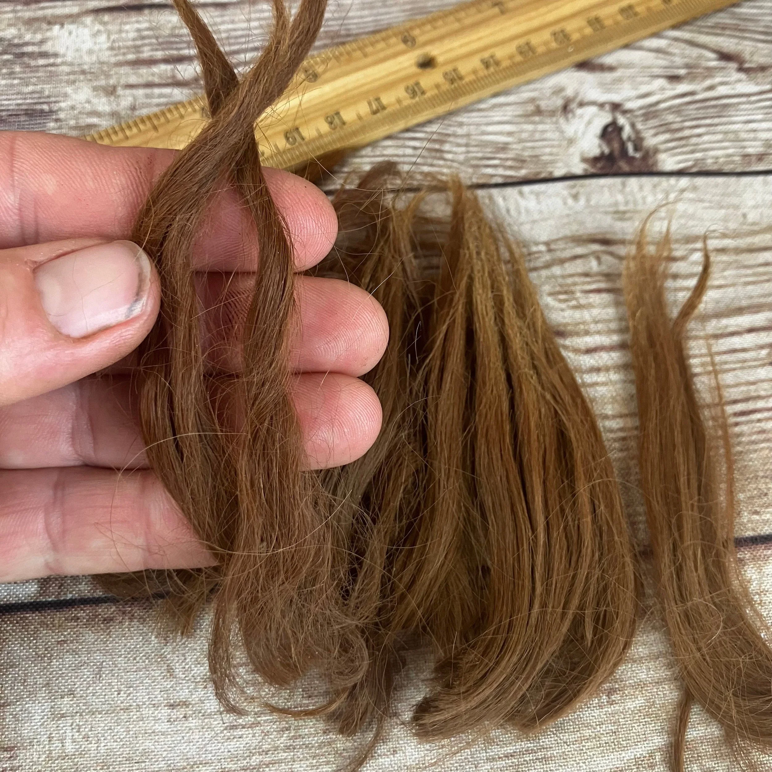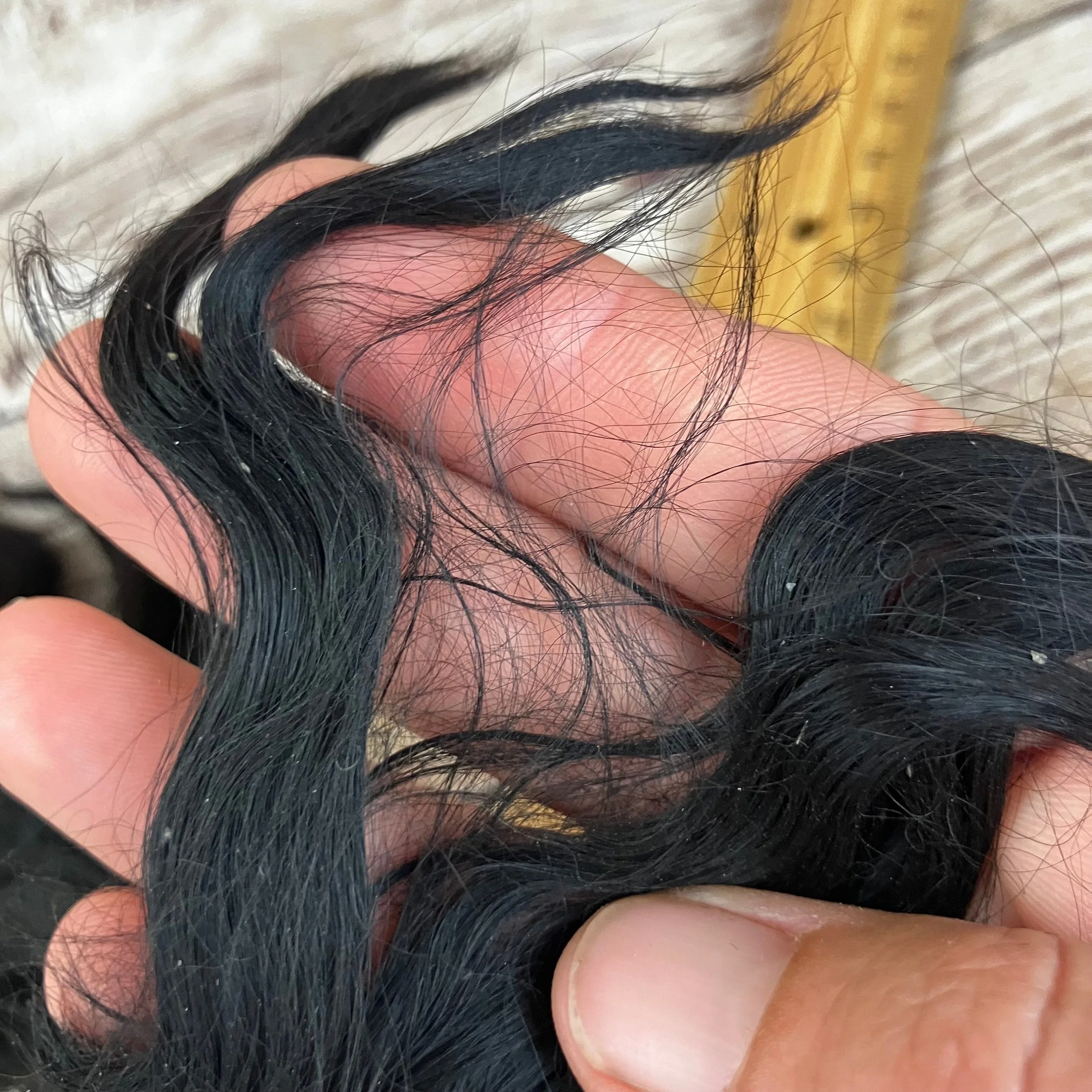 Full Suri alpaca fiber in 3 different colors, black, white/cream and reddish-brown. I have both first and second cuts in varying amounts, depending on the color: