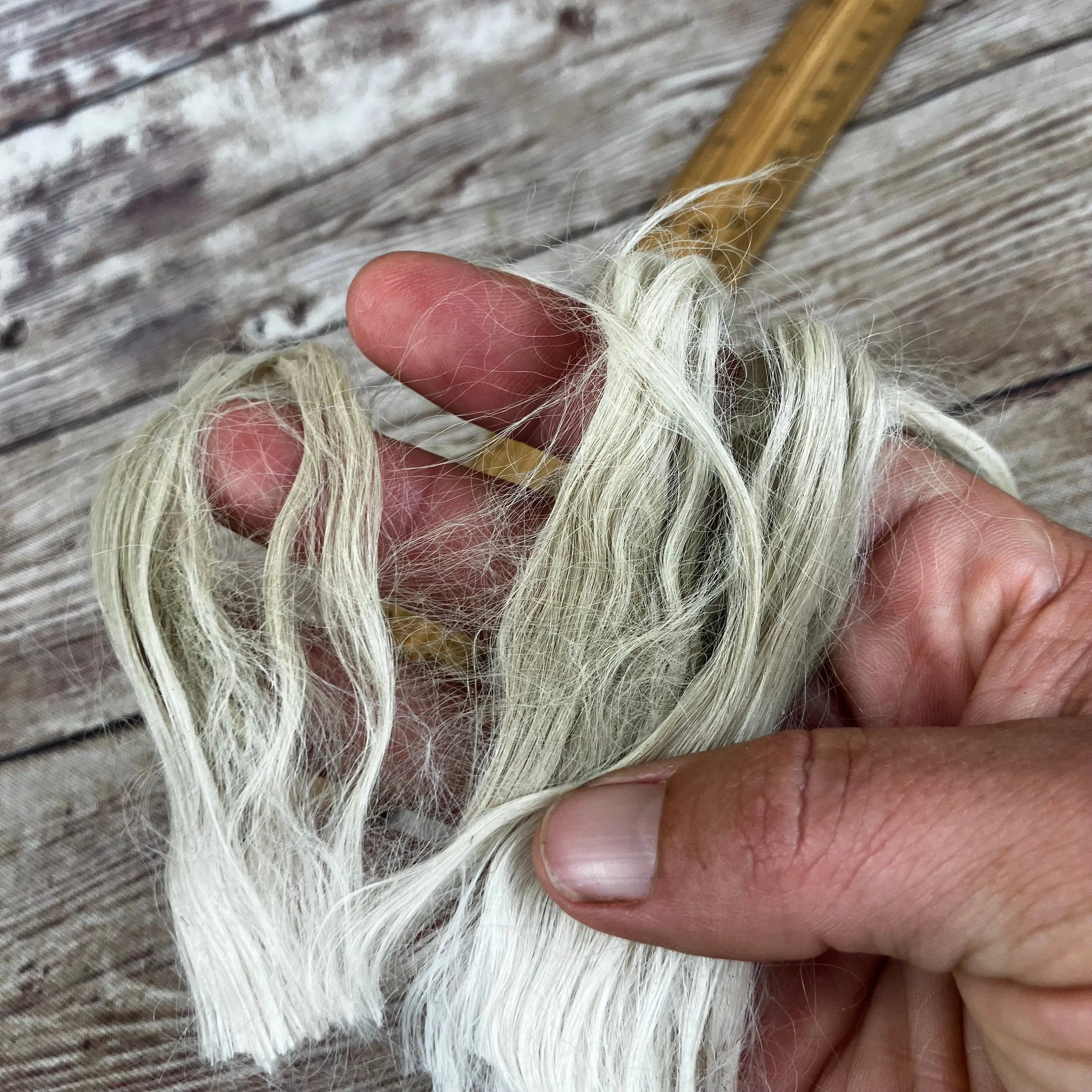 Please let me know in advance if you're interested in more than a pound, so that I have time to skirt it - it takes longer to prep Suri for sale than it does Huacaya, so I may need a few days advance notice! I also have several Huacaya-Suri cross fleeces, that are just lovely, they have an almost invisible but distinct difference in body from full Suri, but are still very low crimp so quite silky, just fluffier! - I'm happy to send a small sample along with a purchase, on request.